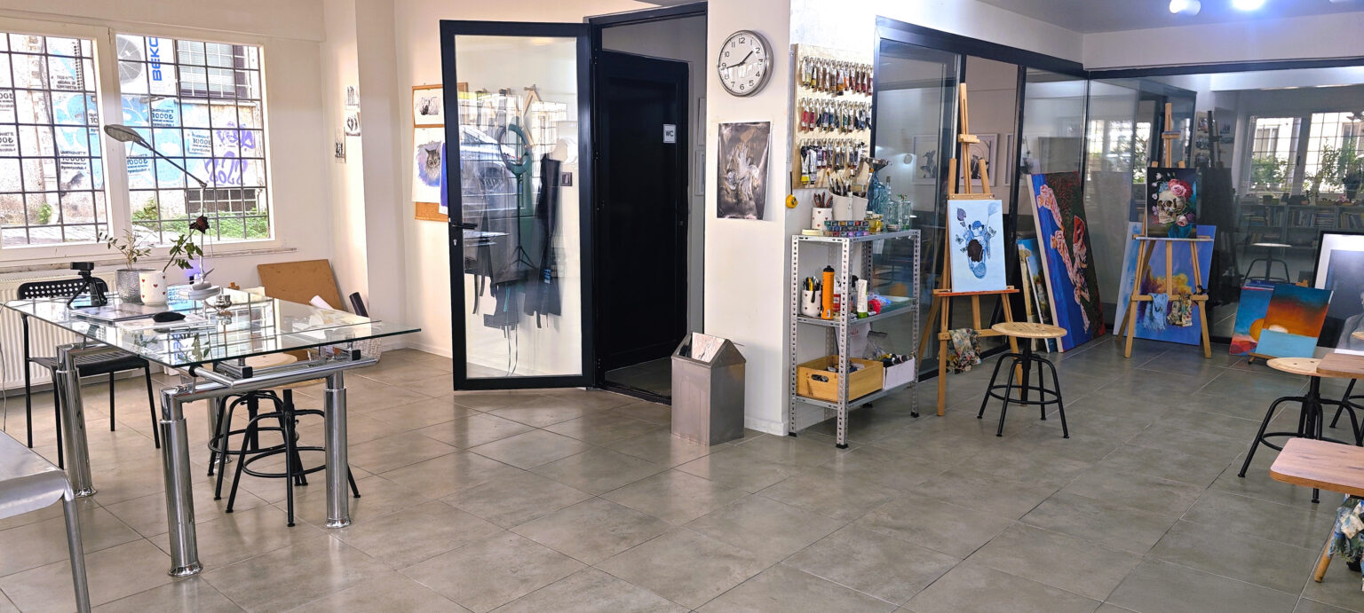 Beşiktaş’ta resim dersi arayanlar için alışılmış kurs düzeninden farklı bir yer burası. Bir sanat atölyesi. Aktif bir sanatçının üretim alanı.